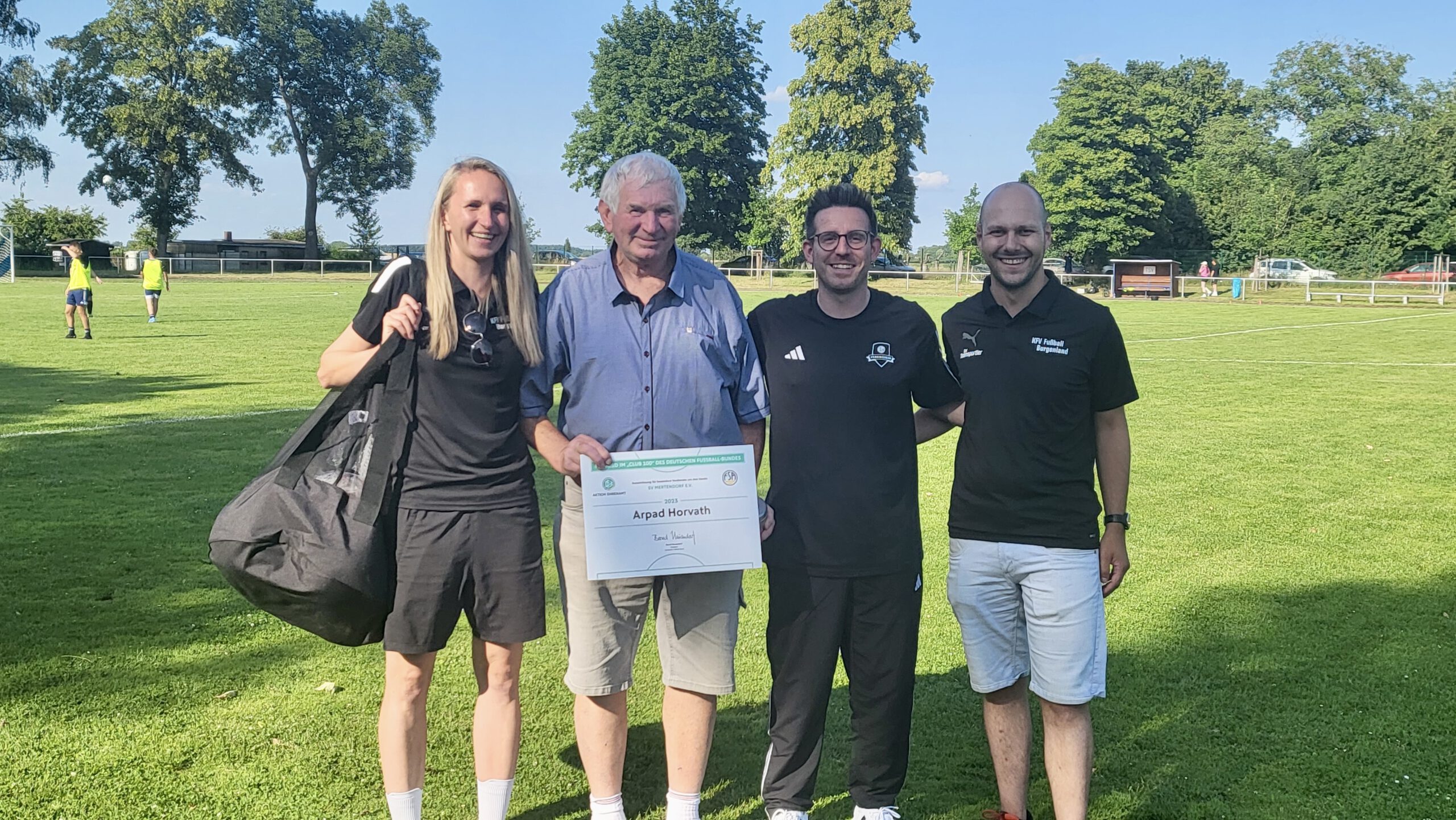 Am vergangenen Wochenende wurde ihm nun eine weitere Ehre zu Teil. Im Rahmen des Pokalfinaltages in Lützen wurde Arpad in den „Club 100“ des Deutschen Fußballbundes aufgenommen.