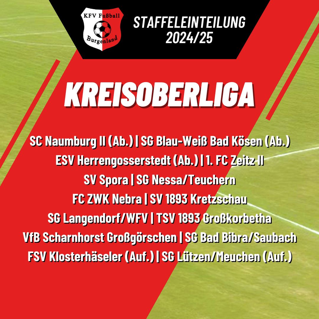 Nach der Eröffnung der neuen Saison am 26. Juli 2024 mit dem SuperCup-Endspiel zwischen Kreismeister SV Großgrimma und Burgenlandpokalsieger SSC Weißenfels II im Wilhelm-Kaiser-Stadion in Großkorbetha, startet der Meisterschaftsbetrieb offiziell am Wochenende 9. – 11. August 2024 mit dem ersten Spieltag.