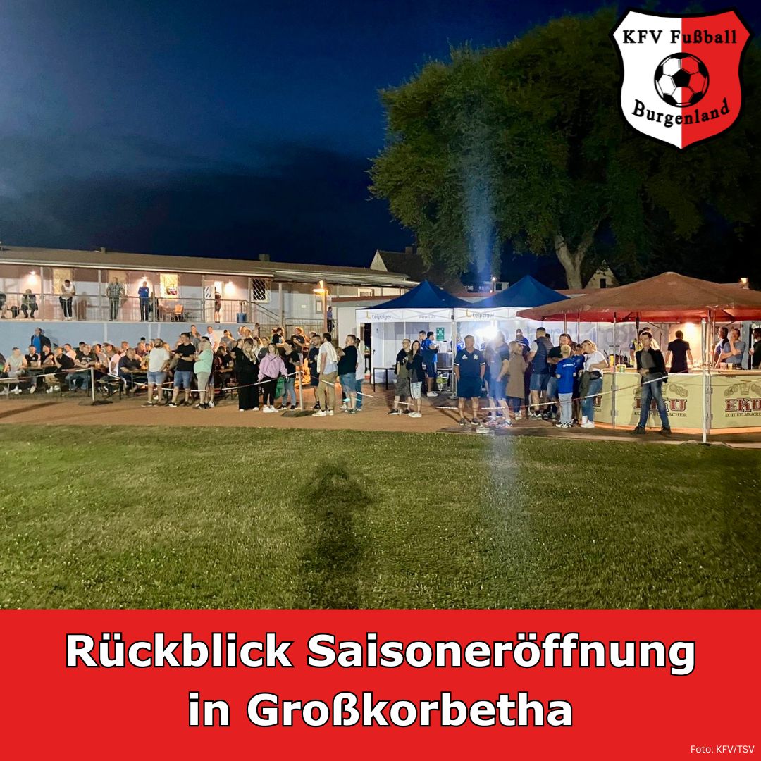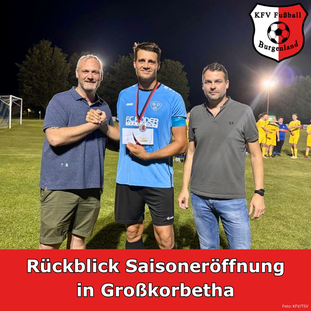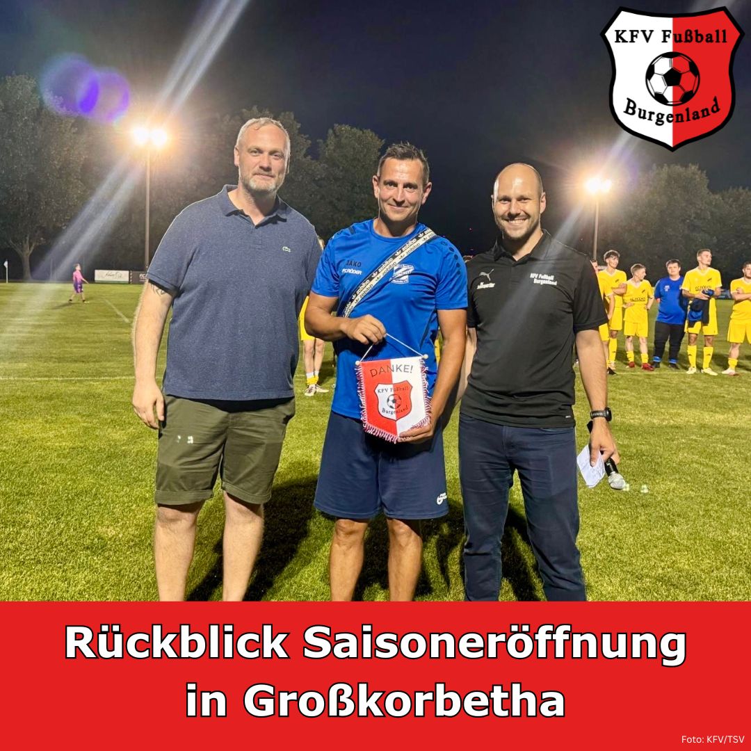 Die Spielzeit 2024/25 im KFV Fußball Burgenland ist offiziell eröffnet! Am Freitag, dem 26. Juli 2024, folgten 650 Zuschauer der Einladung des KFV nach Großkorbetha. Im mittlerweile dritten Jahr in Folge wird die neue Spielzeit mit dem SuperCup-Endspiel unter Flutlicht mit den vorgeschalteten Staffeltagen des Herrenspielbetriebs eingeläutet. In hervorragender Manier durch den gastgebenden TSV 1893 Großkorbetha unter Federführung von René Marks organisiert, bot das Wilhelm-Kaiser-Stadion einen würdigen Rahmen für die Veranstaltung.
