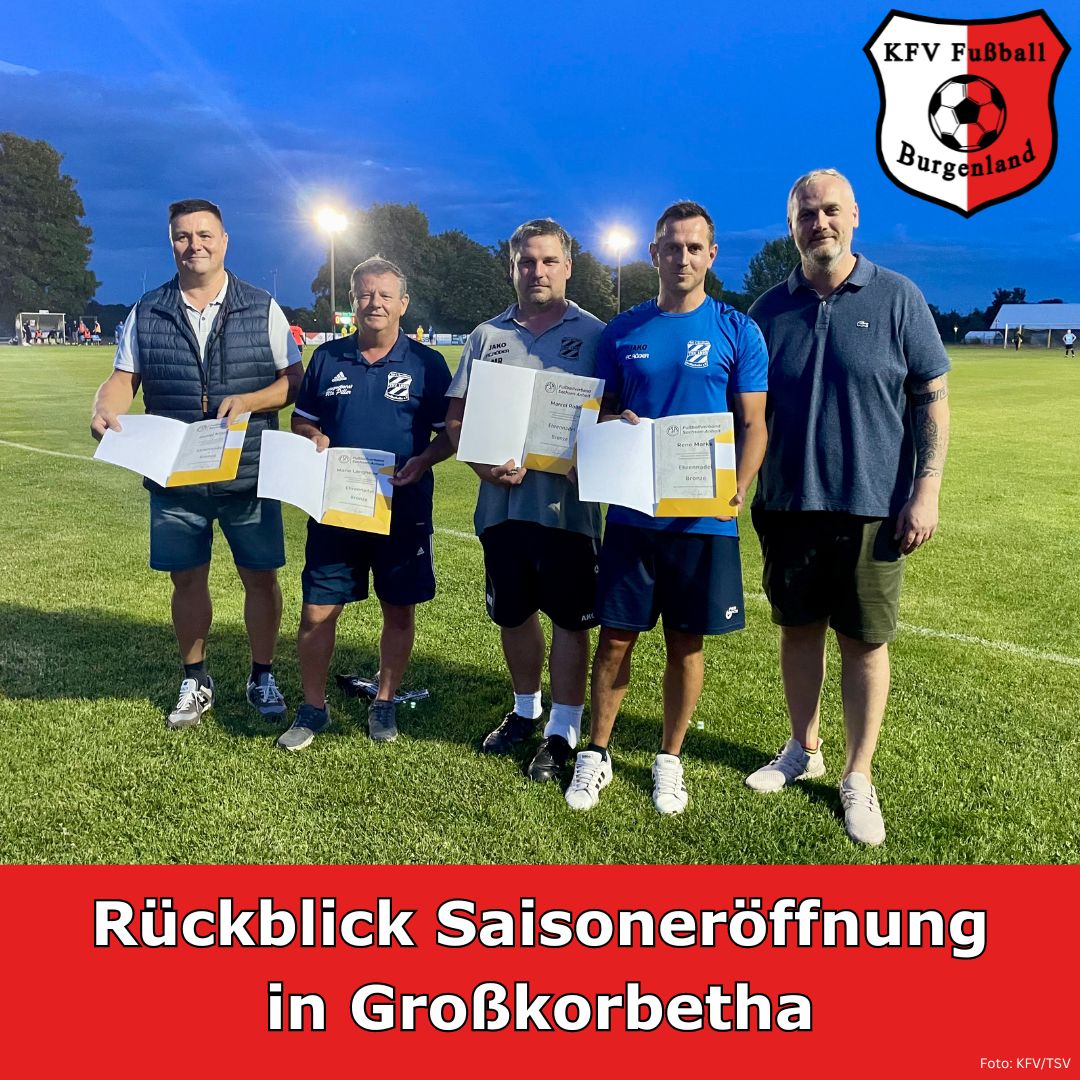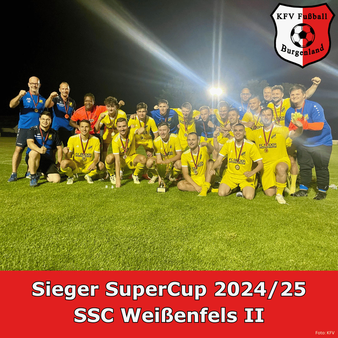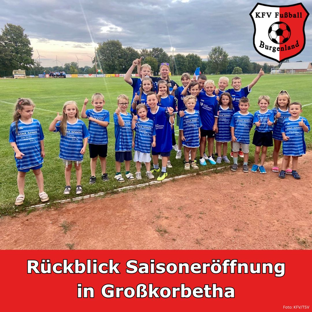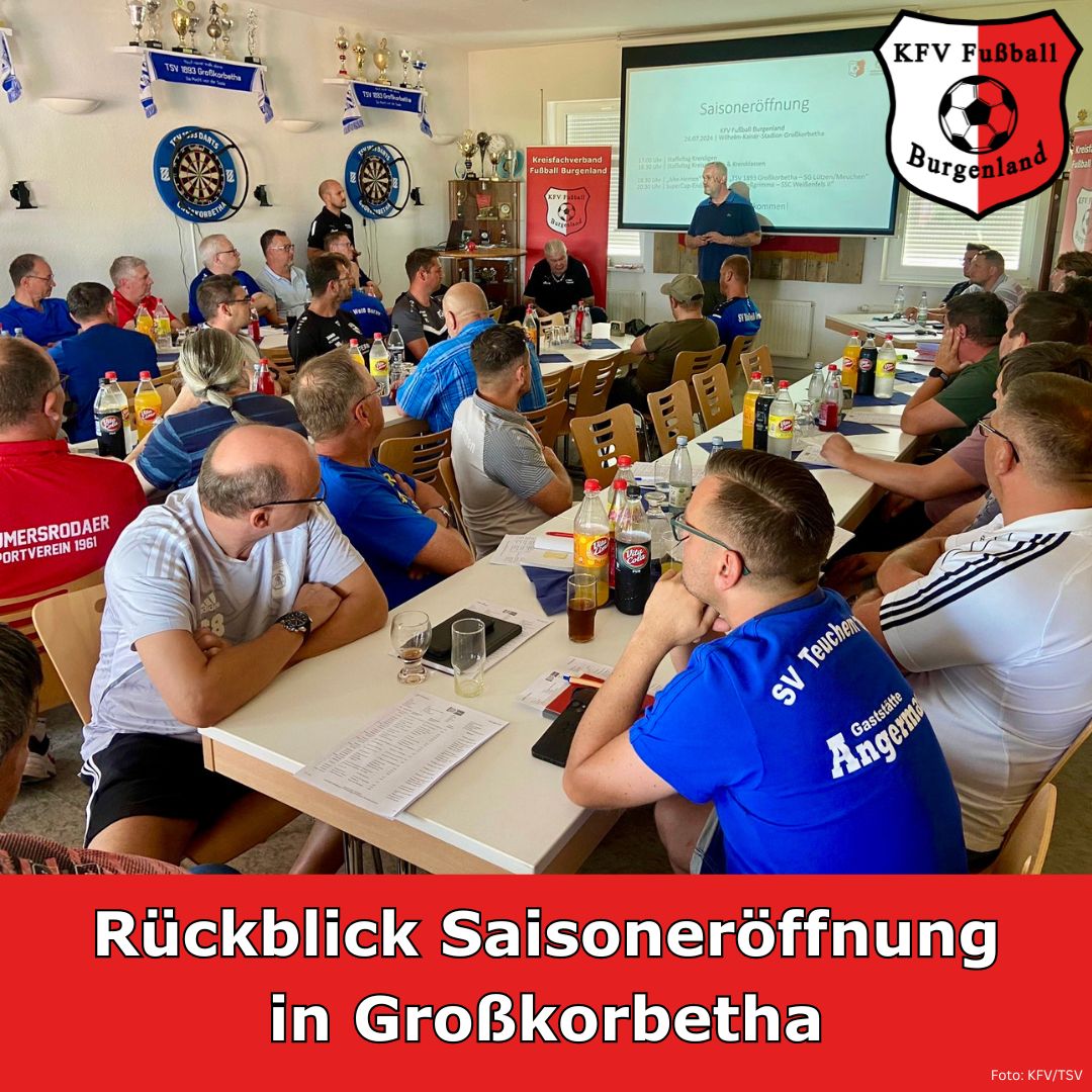 Die Spielzeit 2024/25 im KFV Fußball Burgenland ist offiziell eröffnet! Am Freitag, dem 26. Juli 2024, folgten 650 Zuschauer der Einladung des KFV nach Großkorbetha. Im mittlerweile dritten Jahr in Folge wird die neue Spielzeit mit dem SuperCup-Endspiel unter Flutlicht mit den vorgeschalteten Staffeltagen des Herrenspielbetriebs eingeläutet. In hervorragender Manier durch den gastgebenden TSV 1893 Großkorbetha unter Federführung von René Marks organisiert, bot das Wilhelm-Kaiser-Stadion einen würdigen Rahmen für die Veranstaltung.